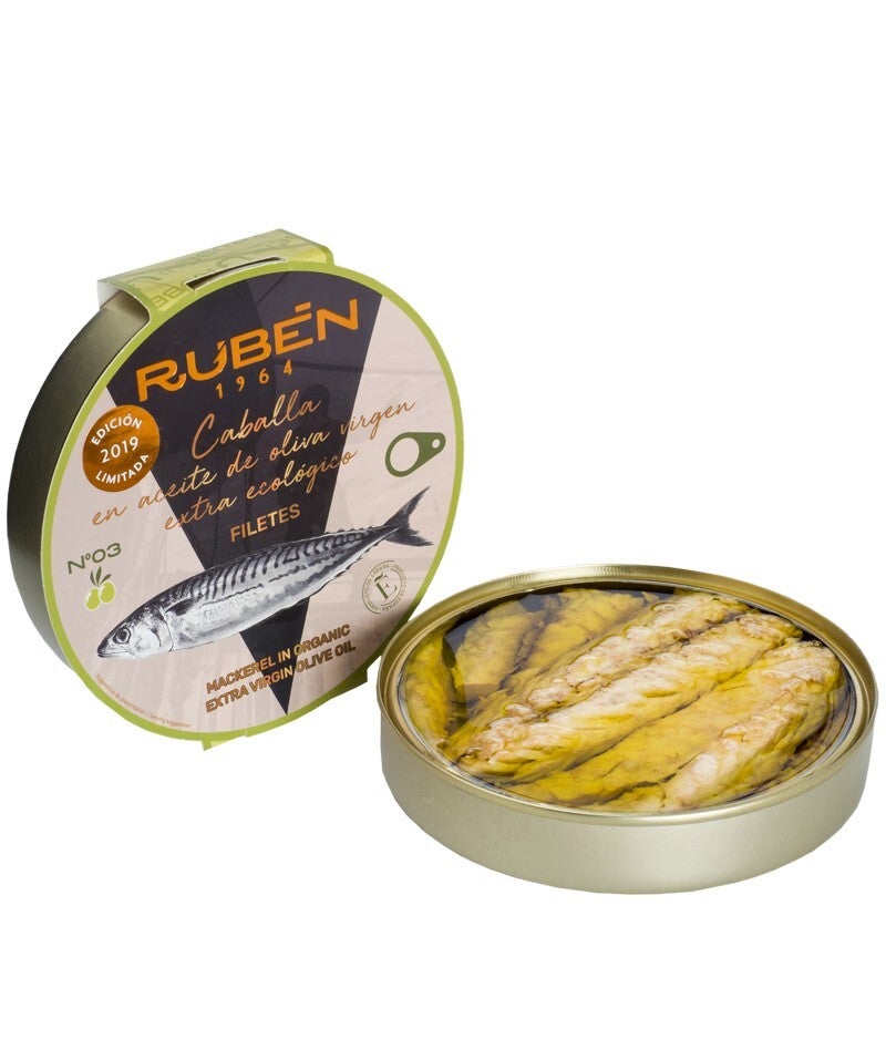 Los filetes de caballa en aceite de oliva virgen extra ecológico de Rubén 1964 han sido cuidadosamente seleccionados y envasados a mano, añadiendo únicamente aceite de oliva virgen extra ecológico. El resultado es una conserva de gran sabor, saludable y natural. En el paladar recibirás un toque fino, pero con la potencia del aceite de oliva virgen extra.