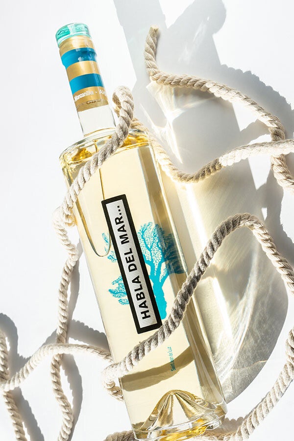 HABLA del Mar no solo sorprende por su contenido insólito. El diseño de la botella está inspirado en un moderno faro, cuya linterna se refleja en el tapón de cristal de la botella, que favorece además la reutilización del envase. El detalle del coral en la etiqueta trasera representa la visión tridimensional que tiene un buzo del paisaje submarino.